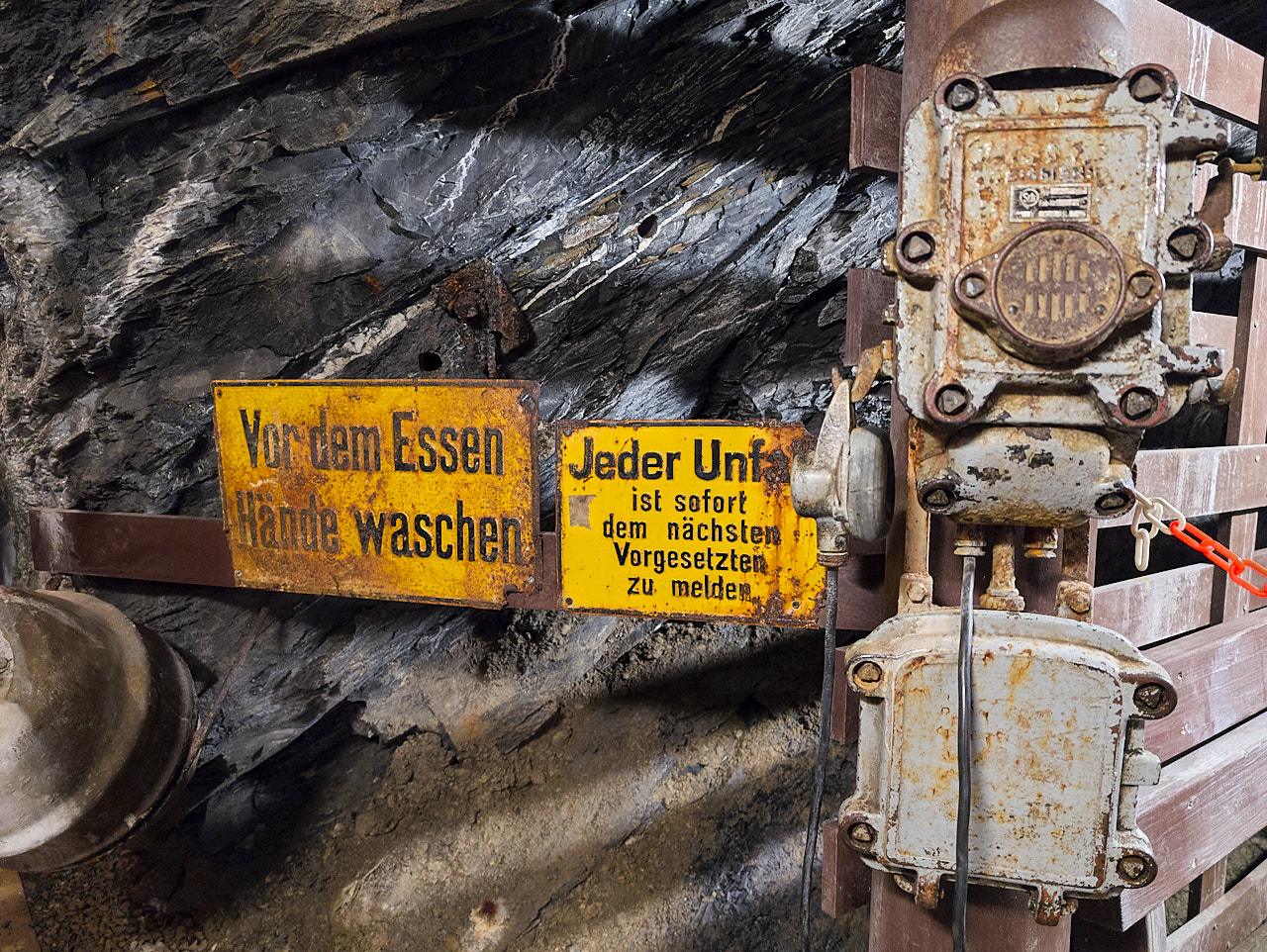 Die Geschichte des Bergbaus endete erst im 20. Jahrhundert, doch die Spuren sind geblieben. Natürlich liessen wir uns die Führungen im Bergwerk nicht entgehen. Die erste Fahrt mit der Bimmel-Bahn in die Stollen war alles andere als bequem: gebückt, wie in einem Käfig, wurden wir ordentlich durchgeschüttelt.