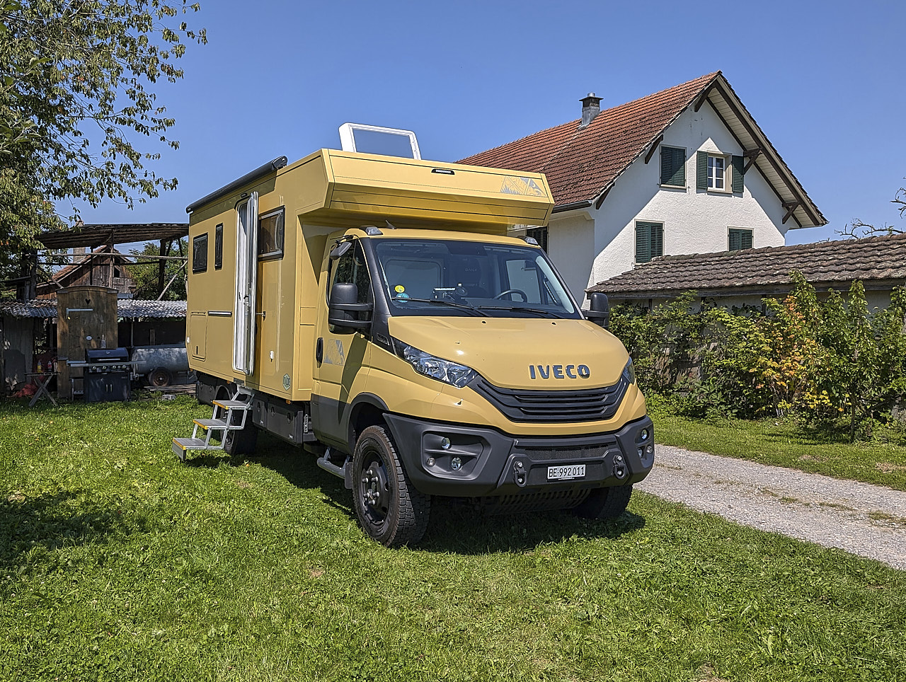 Wir liessen uns auf Gespräche ein, denn man offerierte uns eine spannende Version: Das neue Fahrzeug sollte auf über 3,5 Tonnen aufgelastet werden können. Mehr Zuladung, mehr Möglichkeiten – aber auch mehr Verantwortung. Als Schweizer bedeutete das: C1-Führerschein. Also ran an den Gesundheitscheck, Theoriekurs, Theorie-Prüfung, Fahrstunden, praktische Prüfung – alles mit Zeit, Geld und Nerven bezahlt. Aber wir zogen es durch. Denn der Traum war noch nicht gestorben.