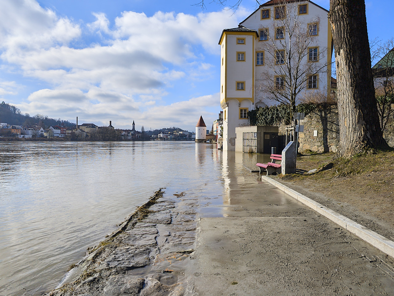 Passau ist eine dieser Städte, die man oft nur vom Namen her kennt. Auch uns ging es so. Wir kannten die Stadt lediglich als Startpunkt der Donau-Main-Rheinfahrt, die wir im Corona-Jahr zusammen mit meinem Vater und meiner Tochter Florence gemacht hatten. Jedoch bestiegen wir damals das Schiff ausserhalb Passaus und kamen nicht in den Genuss dieser herrlichen Stadt. Passau überraschte uns mit einer Mischung aus Ruhe, Geschichte und einer sehr entspannten Atmosphäre. Drei Flüsse treffen hier zusammen: Donau, Inn und Ilz. Dieses Dreiflüsseeck ist nicht nur ein geografischer Punkt, sondern tatsächlich ein Ort, an dem man kurz stehen bleibt, weil die unterschiedlichen Wasserfarben so deutlich sichtbar sind bzw. sein könnten. Ein kleines Naturphänomen, das wir gerne erlebt hätten. Leider zeigten sich alle drei Flüsse in derselben Farbe. Schlammiges Braun. Dies war dem Dauerregen im Einzugsgebiet der drei Flüsse geschuldet. Auch waren die Uferwege teilweise überflutet. Immer wieder kommt es zu Hochwasser, vor allem wenn Donau und Inn gleichzeitig viel Wasser führen. Die Altstadt steht dann schnell im Fokus, weil sie tief und nah an den Ufern liegt.
