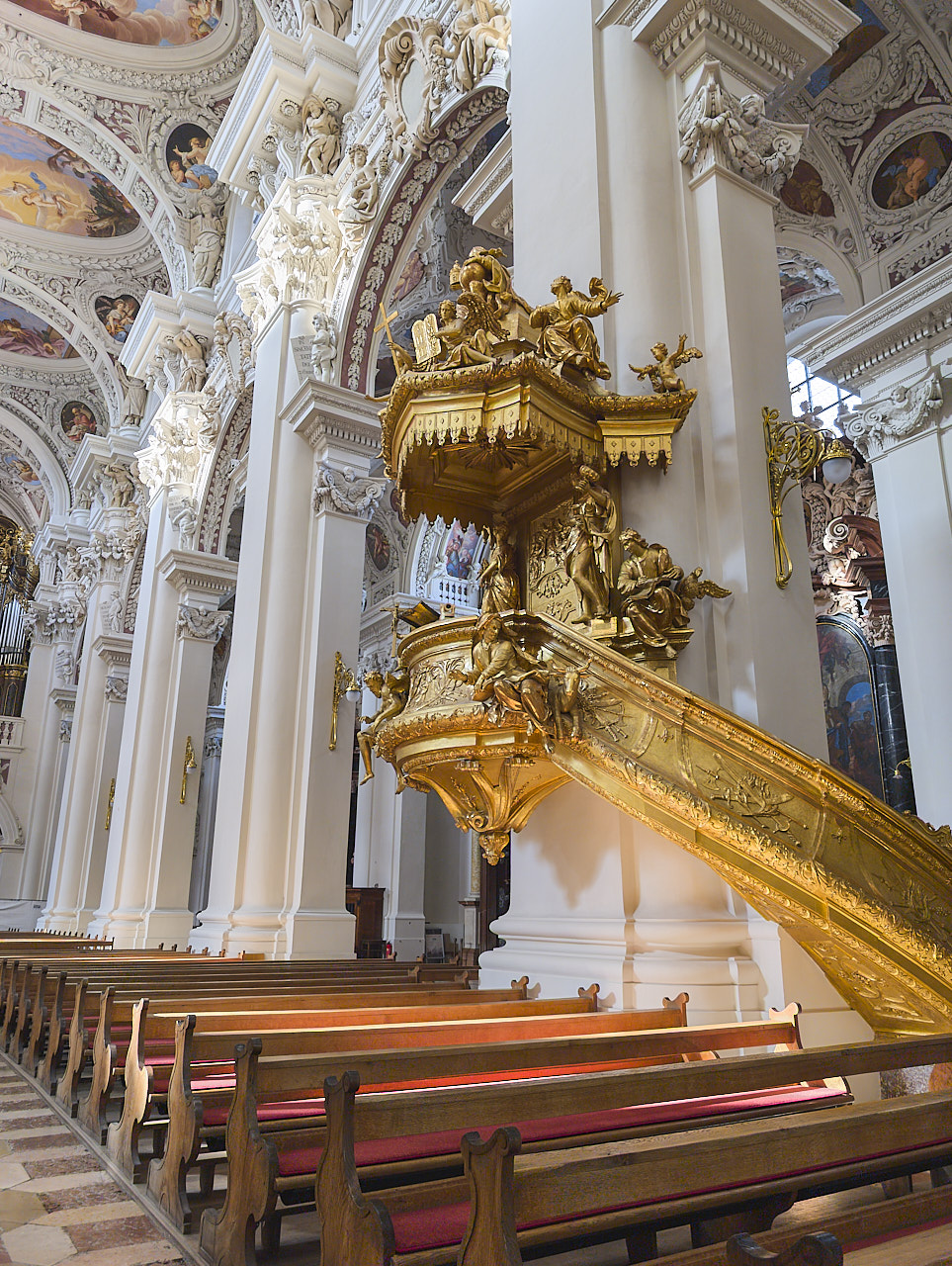 Die Altstadt ist kompakt und lässt sich wunderbar zu Fuss erkunden. Helle Häuser, kleine Plätze, ein paar versteckte Innenhöfe – alles wirkt gepflegt und angenehm unaufgeregt. Früher oder später landet man am Dom St. Stephan. Der Innenraum ist beeindruckend, und die grösste Domorgel der Welt macht den Ort zu einem der markantesten Punkte der Stadt. Gerne hätte wir uns mit einem Orgelkonzert verwöhnt, aber die berühmte Domorgel von St. Stephan wird seit einigen Jahren umfassend restauriert. Staub, Schimmel und die schiere Grösse des Instruments haben eine Generalüberholung notwendig gemacht. Dafür werden nach und nach alle fast 18.000 Pfeifen ausgebaut, gereinigt und technisch erneuert – ein Projekt, das mehrere Jahre dauert und im Dom gut sichtbar ist. Trotz der Arbeiten bleibt die besondere Atmosphäre des Raums erhalten. Man spürt, wie viel Sorgfalt und Fachwissen hier zusammenkommen, um eines der bedeutendsten Instrumente für die nächsten Jahrzehnte zu bewahren.