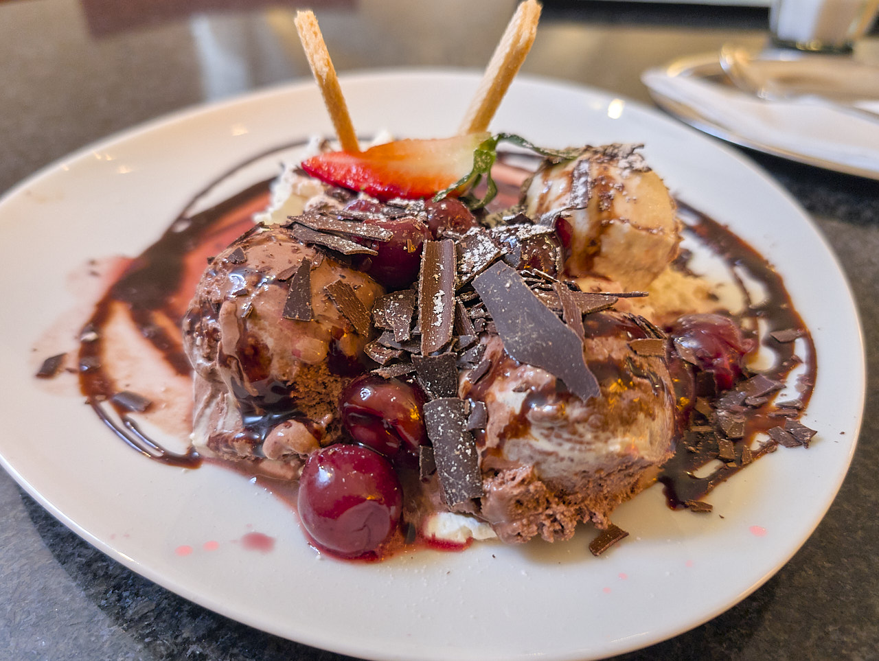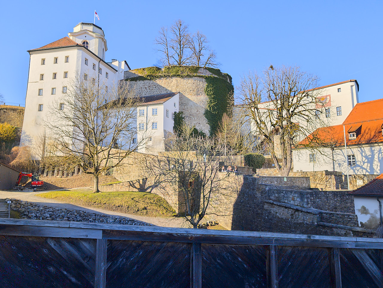 Wer Passau von oben sehen möchte, hat zwei sehr unterschiedliche Möglichkeiten. Auf der Donauseite liegt die Veste Oberhaus, eine weitläufige Burganlage mit einem der besten Blicke über die Stadt. Der Aufstieg ist kurz, aber steil, und oben öffnet sich ein Panorama, das die drei Flüsse und die Altstadt klar voneinander trennt. Die Burg selbst wirkt ruhig und grosszügig – ein Ort, an dem man sich Zeit oder auf der Restaurant-Terrasse bei herrlichstem Frühlingswetter mit einem – für uns unerwartet – kulinarischen Gaumenschmaus verwöhnen lassen kann.